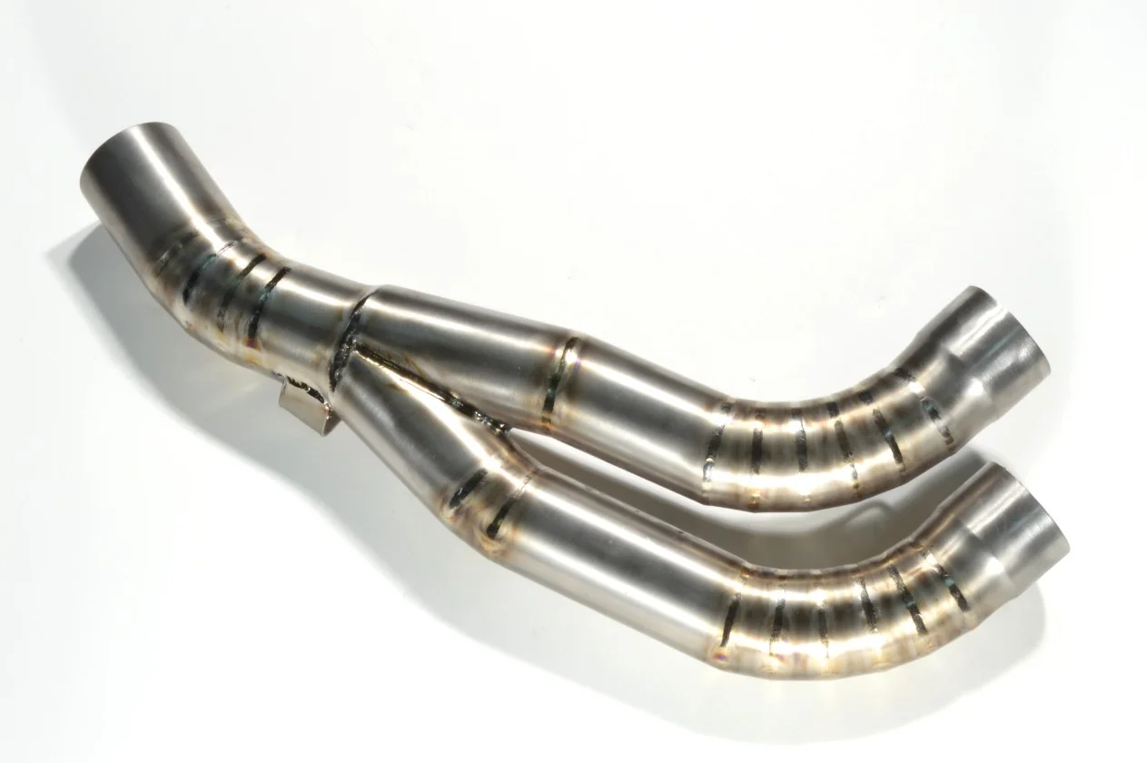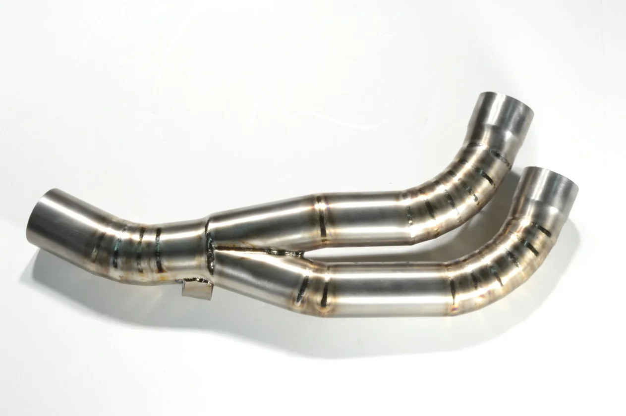Ducati Monster EVO 1100 mid-pipe for Keith's Monster racer. The stock mid-pipe weighs 3lbs 1oz and the titanium pipe weighs 1lb 4oz. Will be working on getting a muffler together this weekend.